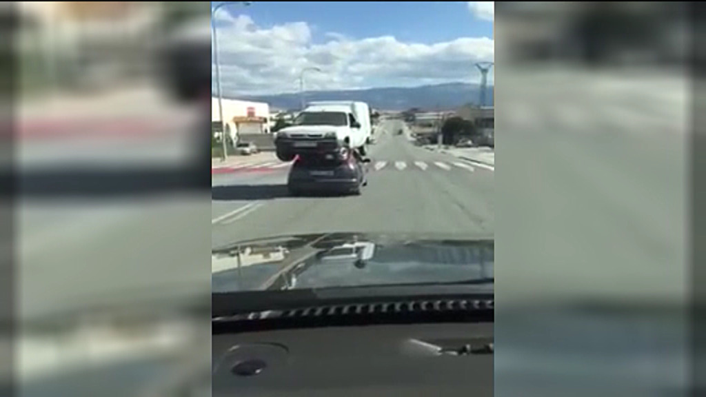 Identifican al conductor que llevaba una furgoneta sobre su coche