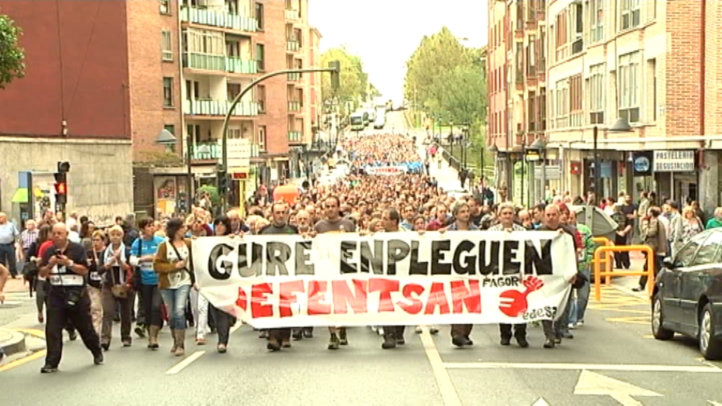 Fagor Etxetresnakeko langileek beren lanpostuen aldeko manifestazioa egin dute Basauri udalerrian, eguerdiko hamabietan hasita. Hain zuzen, herri horretan dago Edesa Fagorren planta, duela bi astetik geldituta dagoena.