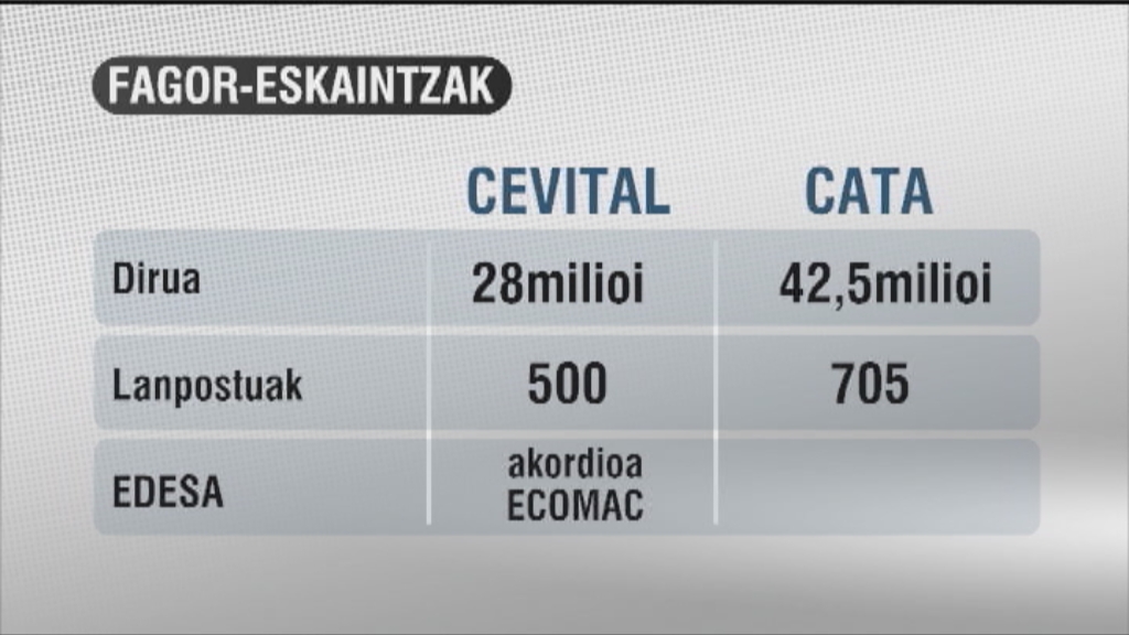 Cevital talde aljeriarrak 28 milioi euro eta 500 enplegu zuzen eskaini ditu Fagor Etxetresnak eskuratzeko. Proposamenak Garagartzako, Eskoriatzako eta Bergarako lantokiak hartuko lituzke, Donostian egindako agerraldian Sergio Treviño Brandt-Cevital enpresako presidente exekutiboak azaldu duenez. Hortaz, Cevitalek aurrekoan baino bost milioi euro eta 50 lanpostu gehiago eskaini ditu bere azken eskaintzan.