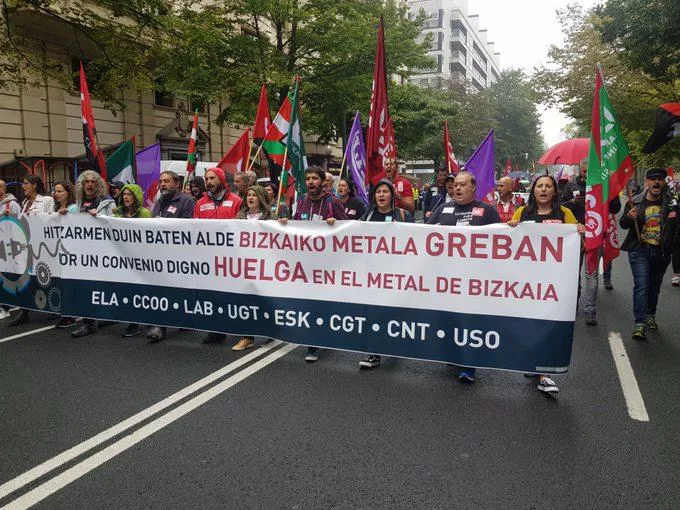 Bizkaiko metalaren sektorean ordezkaritza duten sindikatu guztiek (ELA, CCOO, LAB, UGT, ESK, CGT, USO eta CNT) manifestazioa deitu dute gaurko Bilbon. Hori dela eta, metalgintzako langileek Bizkaiko hiriburuko kale nagusiak zeharkatuko dituzte eguerdian, lan-baldintza hobeak eskatzeko.