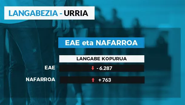 6.287 langabe gutxiago EAEn eta 763 gehiago Nafarroan, urrian