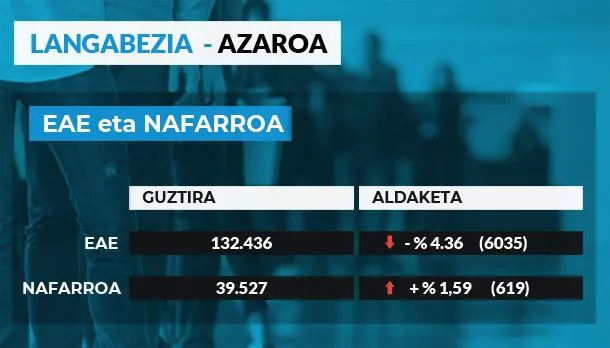 6.035 langabe gutxiago zenbatu dituzte Euskadin azaroan, eta 619 gehiago Nafarroan