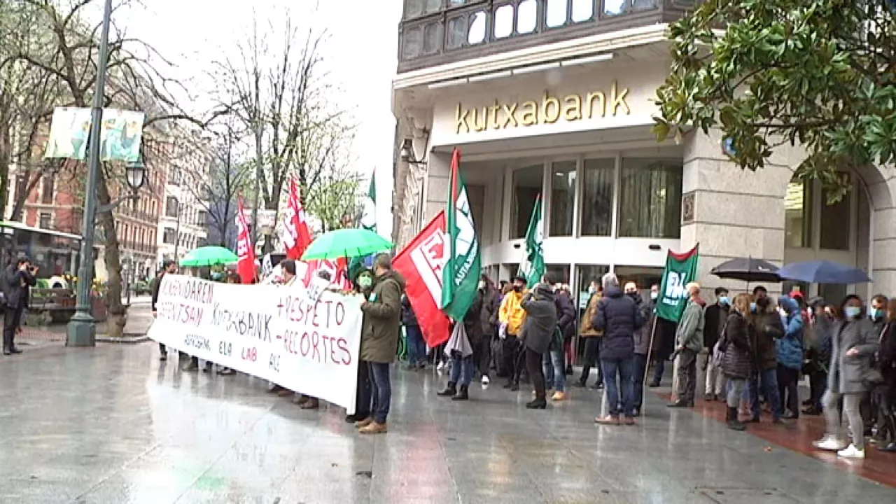 Kutxabankeko langileek bigarren lanuztea egin dute, hitzarmen kolektiboaren defentsan