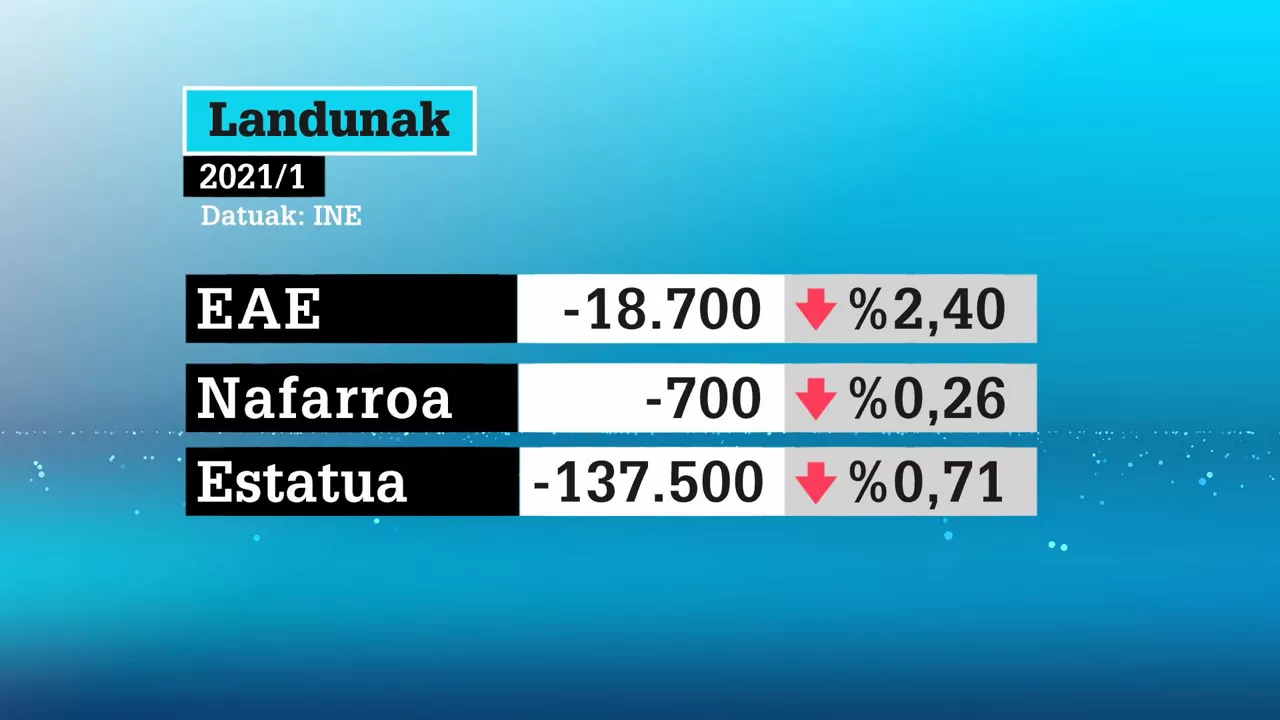 Zifra horiekin, bilakaera berriz ere kaskarra izan da Euskal Autonomia Erkidegoan, 18.700 lanpostu suntsitu baitira 2020ko azken hiruhilekoarekin alderatuta, urte horretan pandemiak 13.200 lanposturekin amaitu zuen.