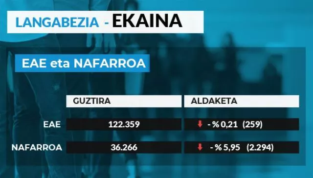 Foru Erkidegoan, ekaineko beherakadarekin iaz baino 4.198 pertsona gutxiago daude lanik gabe, % 10,37.