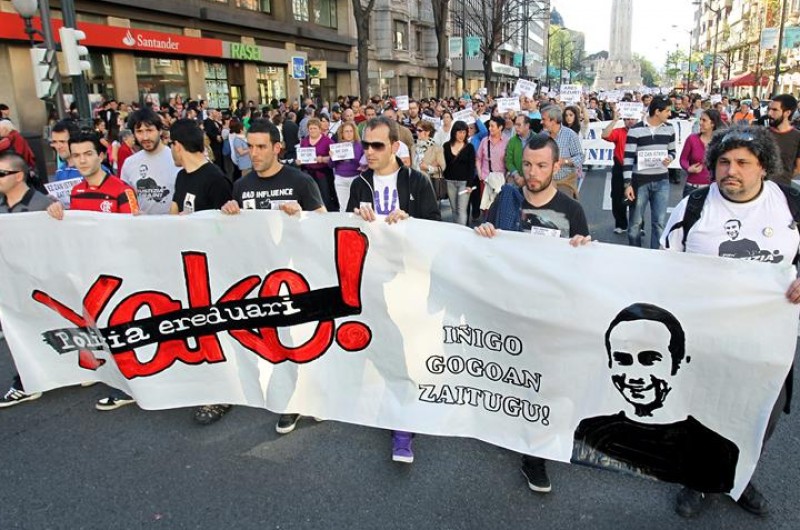 Iñigo Cabacasen heriotzaren lehenengo urteurrena dela eta, manifestazioa egin dute Bilbon. Mila lagunetik gora bildu dira, "eredu poliziala aldatu" lelopean.