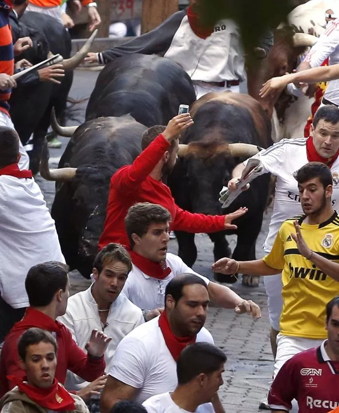 Zezenaren aurrean 'selfie' bat egin du gazte batek gaurko entzierroan