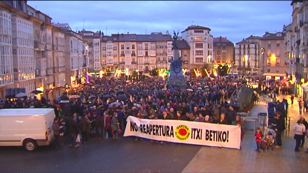 Milaka lagun bildu dira gaur Gasteizen "Araba Garoñarik gabe" plataformak deitutako manifestazioan parte hartzeko. Santa Maria de Garoña Burgoseko udalerrian kokatutako zentral nuklearra behin betiko ixteko eskatu dute manifestariek.