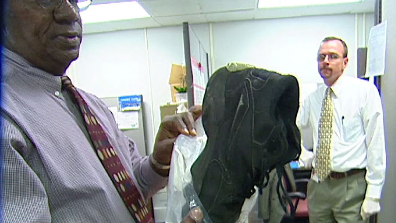 Irudietan Chuck Morton fiskala ageri da, bere eskuekin Ibar kasuko frogak ukitzen, eskularrurik gabe. Defentsak agertu nahi duena da frogak ez direla ondo zaindu eta kutsatu egin ahal izan direla.