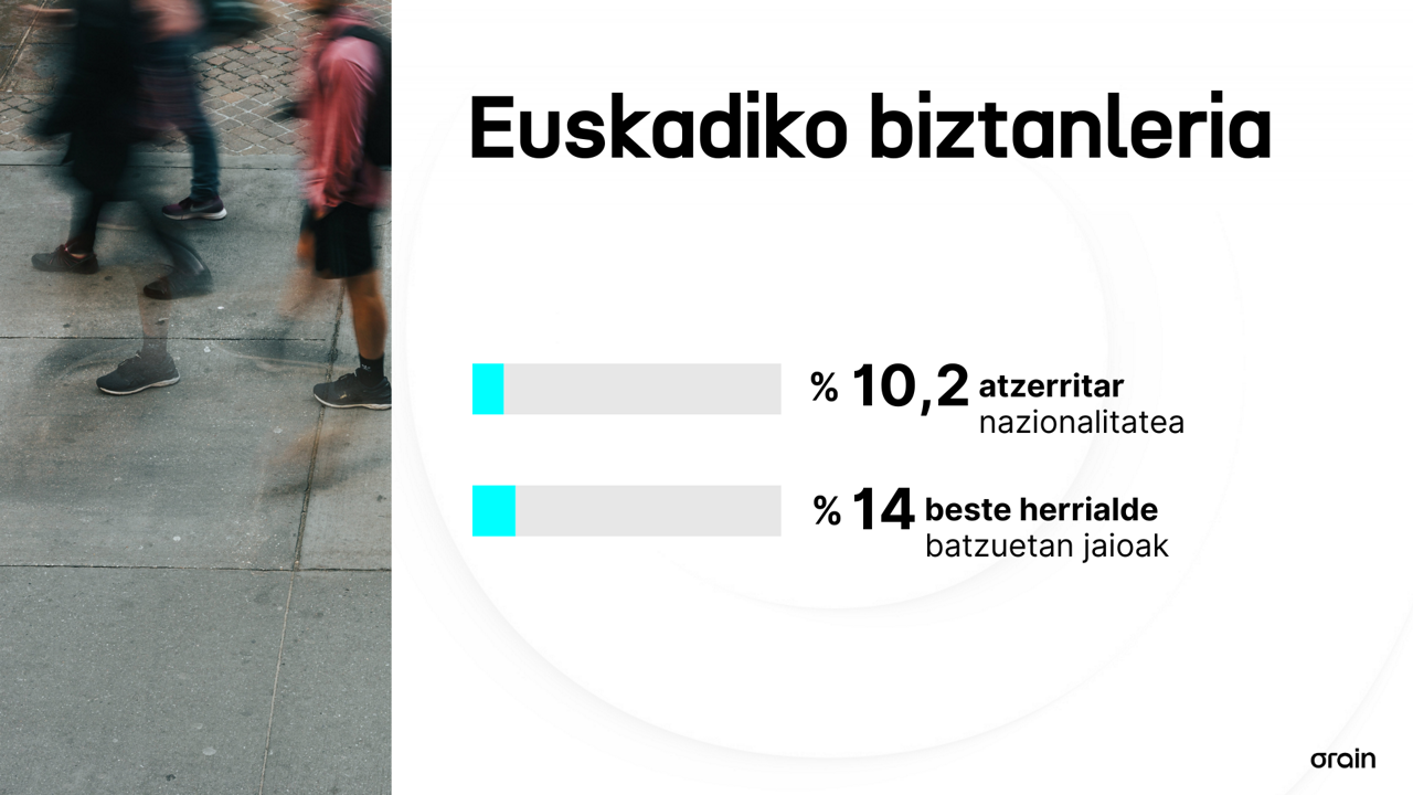 Euskadiko biztanleen % 10,2 atzerritar nazionalitatekoak dira eta % 14 atzerrian jaioak