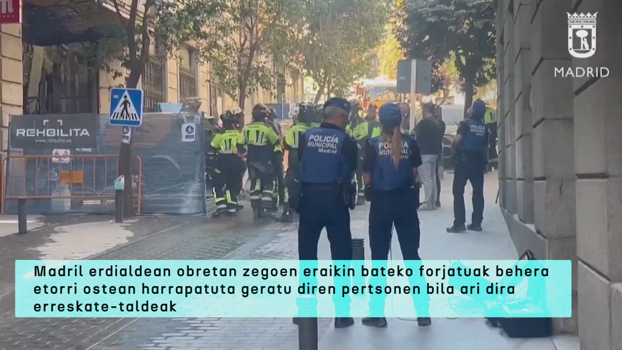 Erreskate lanetan Madrilgo Udaleko suhiltzaileak, Polizia Nazionalaren eta Udaltzaingoaren txakurrak eta droneak ari dira lanean. Oraingoz, hiru langile artatu dituzte: bat, larr,i eta bi, arin. Ezbeharra 13:00etan gertatu da, eta alboko beste eraikin bat ere hustu behar izan dute.