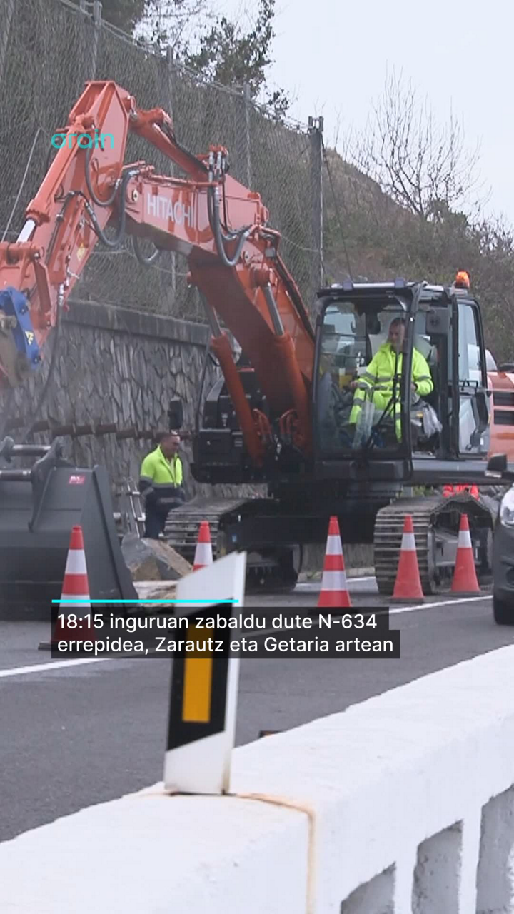Zarautz eta Getaria (Gipuzkoa) arteko N-634 errepidea 18:15ean ireki dute, ia 24 orduz itxita egon eta gero. Euriteen ondorioz, harritzar bat erori zen atzo segurtasun sarera, eta gaur arratsaldean kendu dute, atzerako hondeamakina baten laguntzarekin.