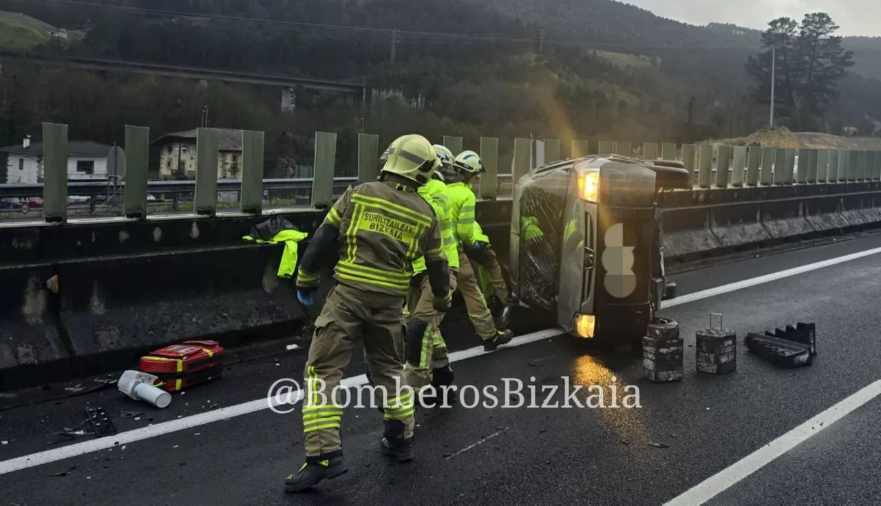 Istripua 09:30 aldera jazo da, bi autok talka egin dutenean. Horietako bat irauli egin da, eta larrialdietarako zerbitzuek errepidea itxi behar izan dute tarte batean, Bilborako noranzkoan, baina errei bat ireki dute handik gutxira.