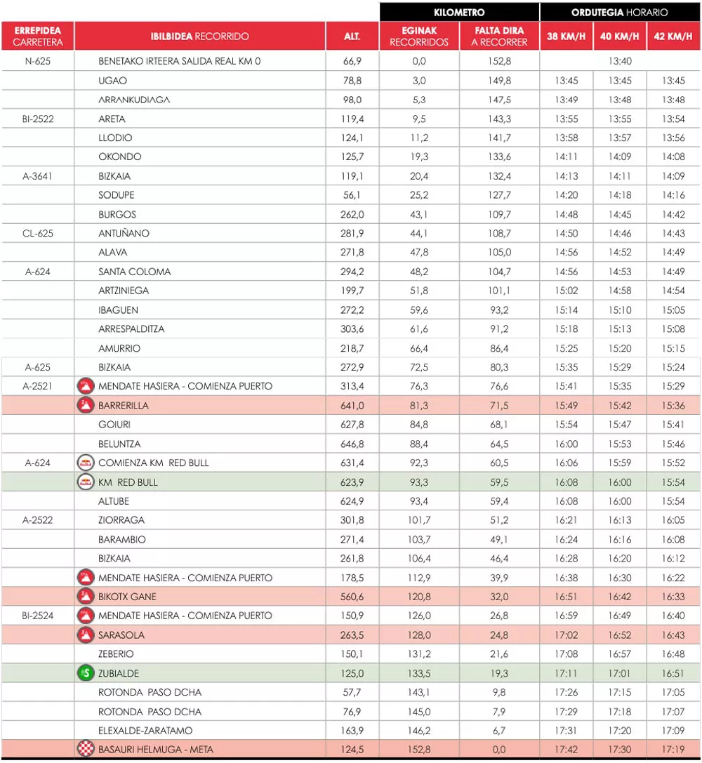 -A-8an, 110 irteeran: Lasterketa bi aldiz igaroko da puntu horretatik, eta bi mozketa izango dira, Kantabriarako noranzkoan. Lehengoa, 12:30-14:15; eta bigarrena, 16:00-18:15.