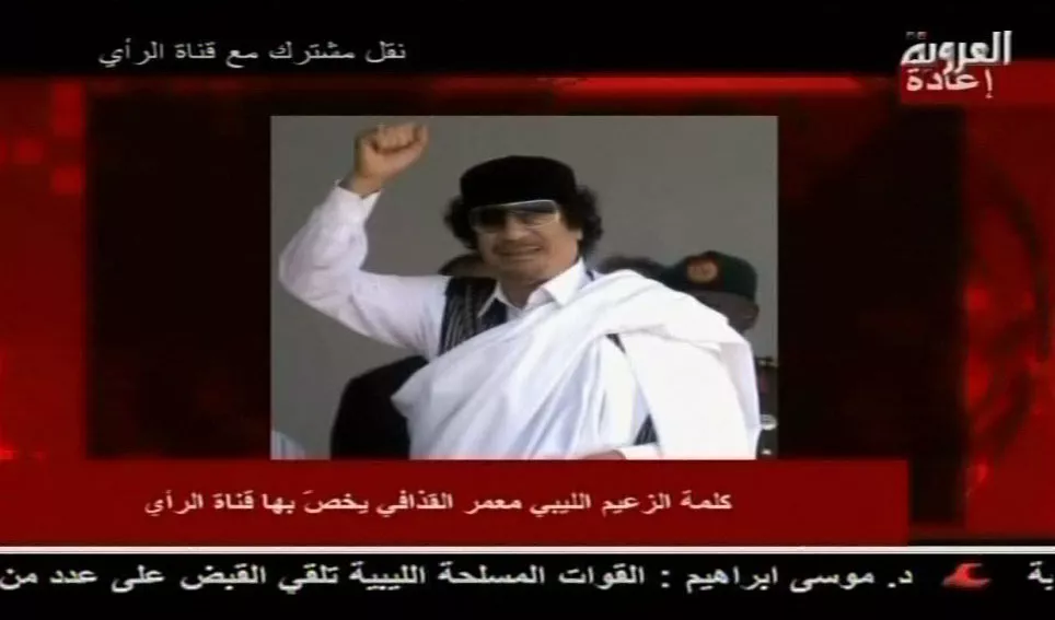 Lehenengo aldia da Gadafi libiarrei zuzentzen zaiela matxinoek ia Tripoli osoaren kontrola hartu zutenetik. Inork ez daki koronela non dagoen, baina Saif al Islam semeak ziurtatu du Libian jarraitzen duela.