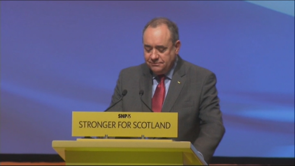 Eskoziako Alderdi Nazionalistaren buruzagi izan den Alex Salmondek Eskoziaren independentzia defendatu du alderdiko buru bezala egin duen azken hitzaldian. “Erresuma Batutik banatzea da Eskoziaren etorkizuna”, esan du.