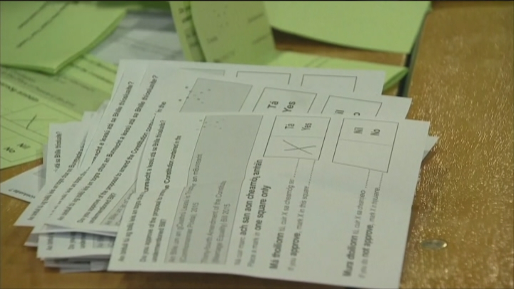 Riona Ni Fhlanghaile boto zenbaketako arduradunak prentsaurrean adierazi duenez, guztira 1.201.607 baiezko boto eta ezezko 734.300 boto izan dira.