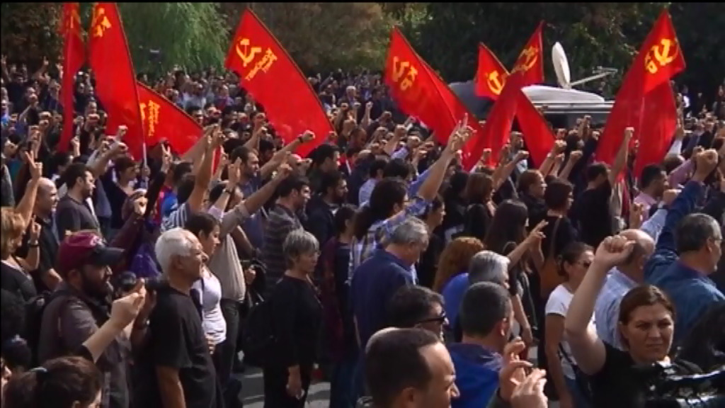 Ehunka manifestari atera ziren atzo arratsaldean Istanbuleko kaleetara, atentatuan Turkiako Estatuaren ustezko parte-hartzea salatzeko. Parte-hartzaileek Taksim plazara arteko ibilbidea egiten saiatu ziren era honetako esaldiak oihukatuz: "Erdogan, dimiti ezazu" edota "AKP, hiltzaile". Hau da, Recep Tayyip Erdogani eta bere Justizia eta Garapena Alderdiari erreferentzia egiten zioten.