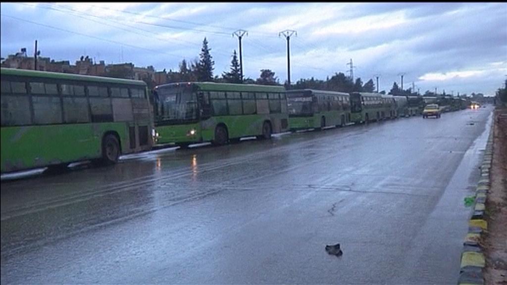 Alepotik matxinoak atera behar dituzten autobusak zain daude