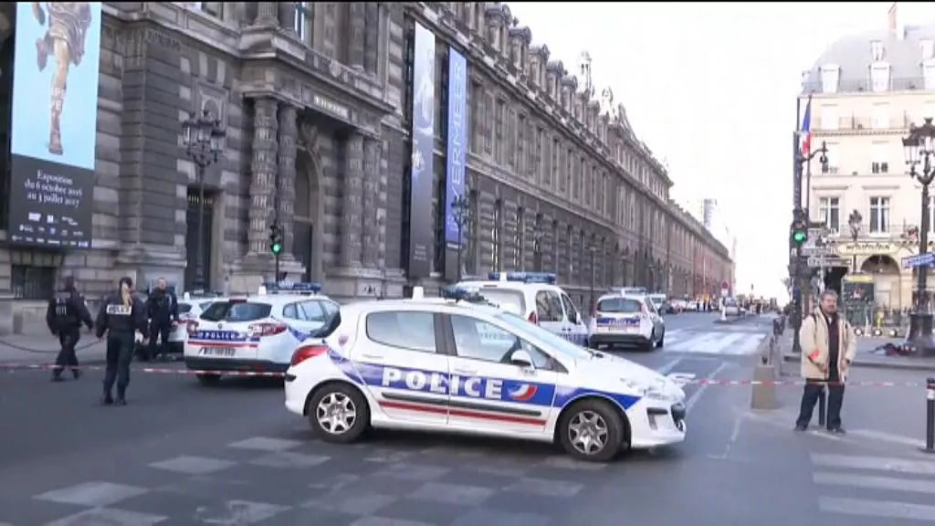 Gizon batek soldadu frantses bati eraso dio Parisen, Louvretik gertu