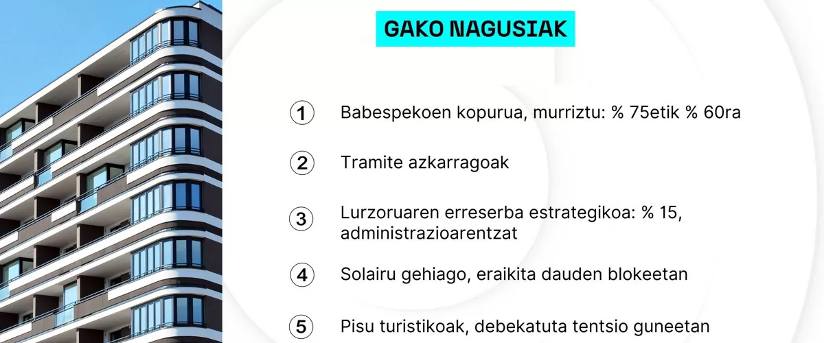 Sustapenak ugaritzea eta tramiteak azkartzea bilatzen duen etxebizitza legearen gakoak