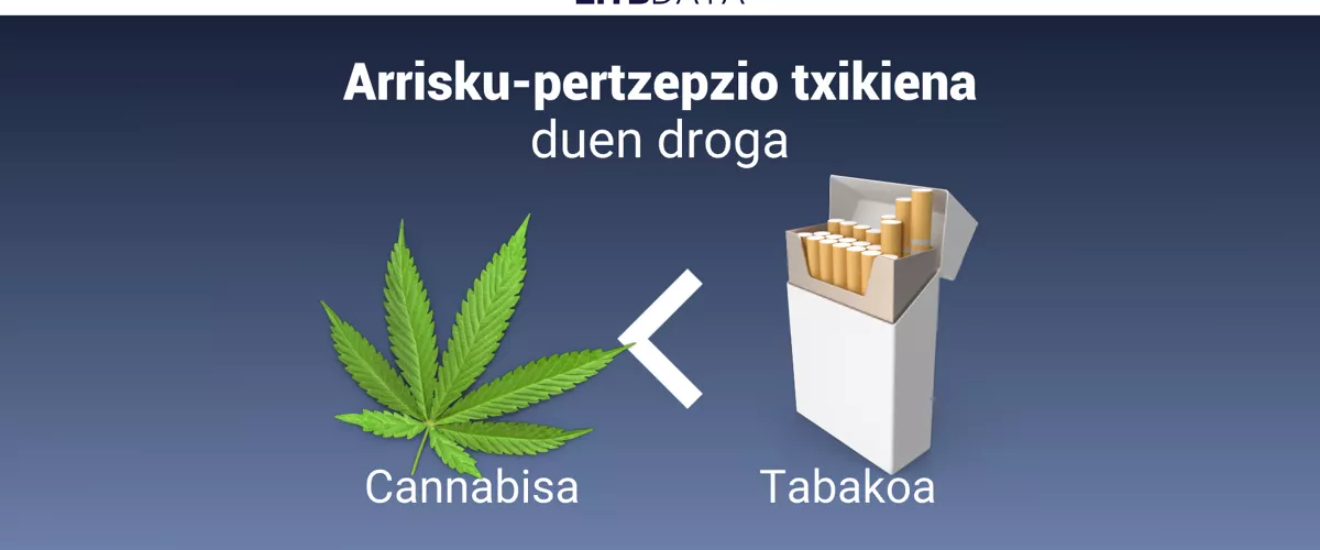 Cannabisaren arriskuaren pertzepzioa aztertutako drogen artean apalena da, EITB Datak jaso duenez. Pertzepzio apala izatearekin prebalentziarekin lotuta egon daiteke, eta talka egiten du intoxikazioengatiko larrialdietako datuekin.