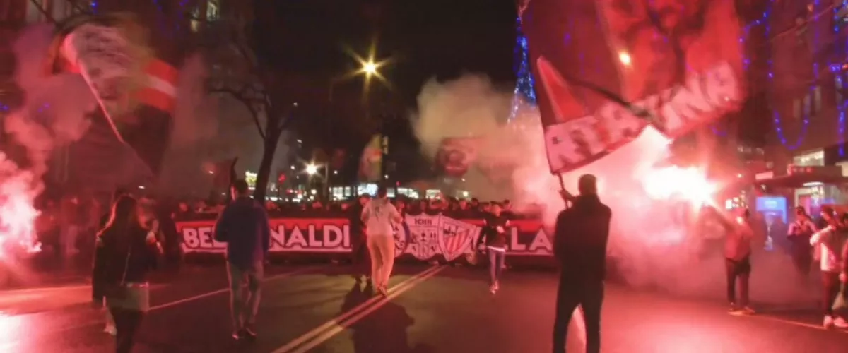 Athletic eta Paris Saint Germain taldeen arteko partida hasi baino lehen, zaleak bereizita iritsi dira San Mames estadiora, baina jai giroan. Athleticeko zaleek egindako ibilbidean ez dira falta izan jokalari zuri-gorriak animatzeko oihuak eta abestiak.