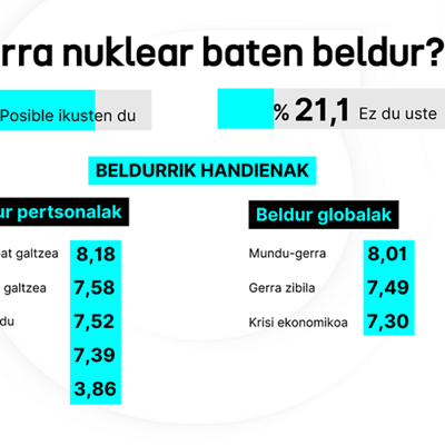 CISen inkesta baten arabera, herritarrei gehien kezkatzen dien beste beldur batzuk dira gertuko senide bat galtzea, osasuna galtzea, itsu geratzea edo minbizia hartzea.
