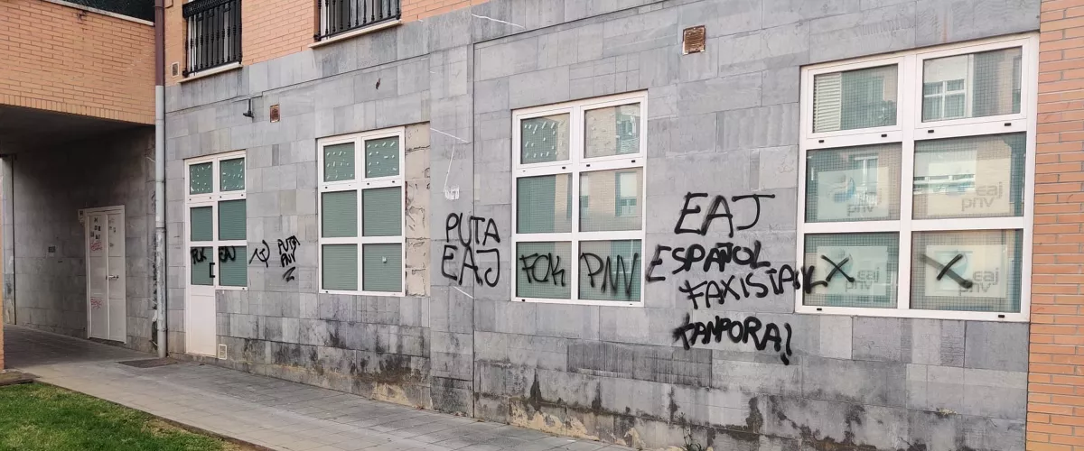 Pintura beltza baliatuz, besteak beste, "EAJ español. Faxistak kanpora!" idatzi dute pintaketa horietan, baita igitaiaren eta mailuaren irudia egin ere.