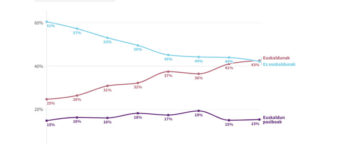 Euskaldun kopurua bikoiztu egin da 40 urtean, baina euskararen erabilerak ez du erritmo horretan aurrera egiten