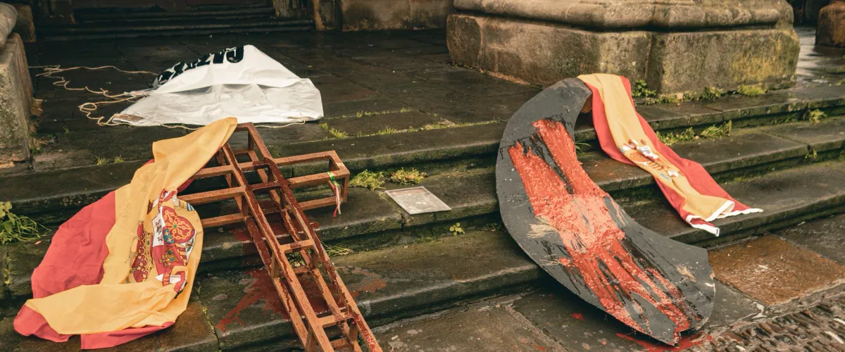 Horrela, Durangoko (Bizkaia) Santa Ana plazan aste honetan kendu edo eraitsi diren ikurrak ezarri ditu: Tuterako (Nafarroa) Osborne zezenaren adarrak, Igeldoko (Gipuzkoa) militar karlista baten omenezko gurutzea, Gasteizko alkate frankistaren izena duen kaleko plaka eta Euskal Herriko hainbat eraikin publikotako Espainiako banderak.