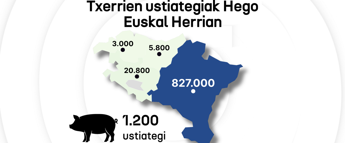 Guztira 1.200 txerri-haztegi daude Hegoaldean, gehienak Nafarroan, 800.000 txerri baino gehiagorekin.