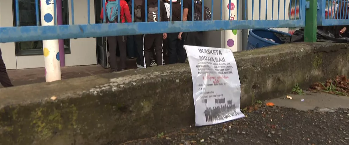 Uribe Kosta institutuko DBHko 4. mailako ikasleek elkarretaratzea egin dute, ikasketa-bidaia bertan behera uztearen aurka protesta egiteko. Izan ere, ikastetxeak eskolaz kanpoko jarduera guztiak bertan behera utzi ditu, Adingabeen Fiskaltzaren aurrean salatu duten irakasle baten aurkako etengabeko jazarpenagatik.