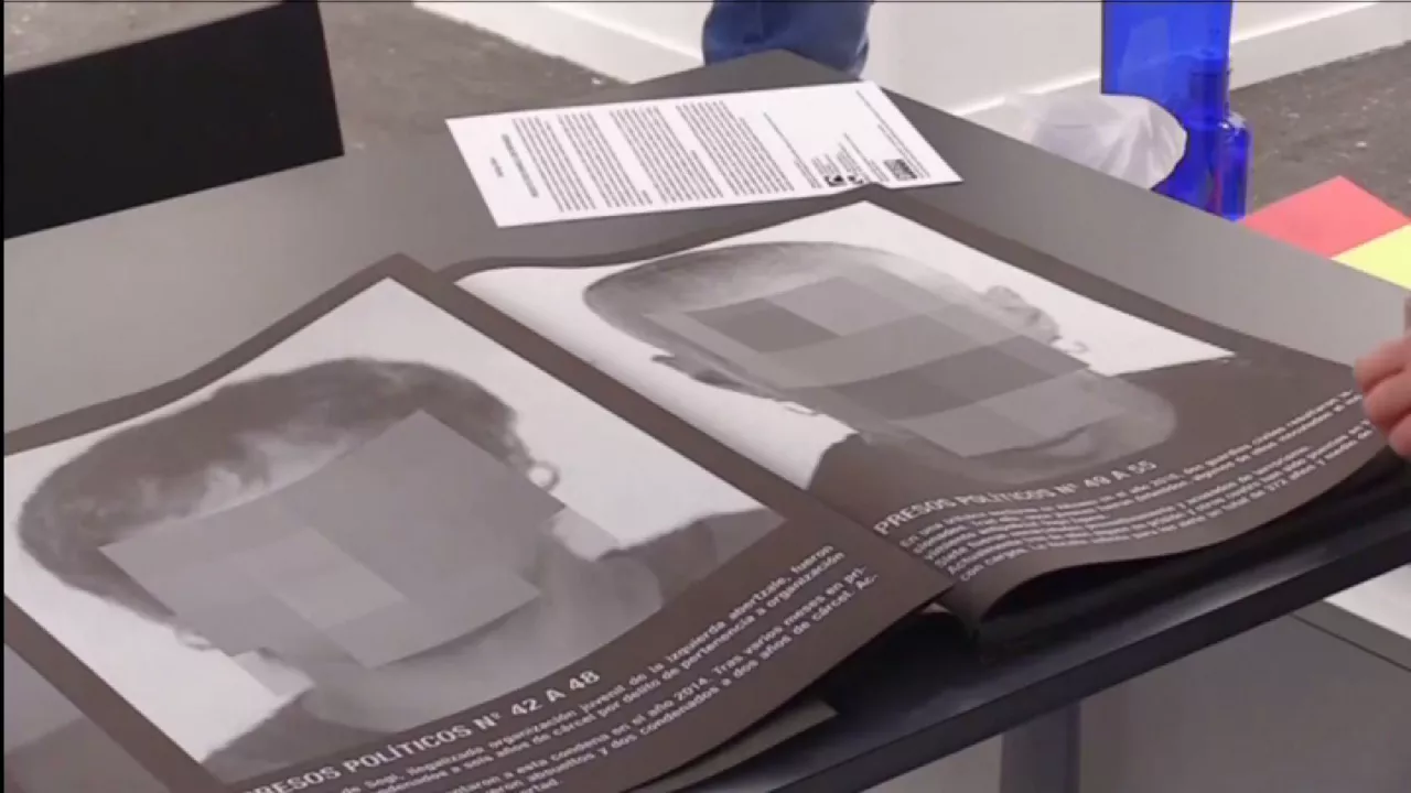 Preso dauden 24 pertsonaren argazki pixelatuek osatzen dute artelana, eta espetxean zergatik dauden azaltzen duen ohar bana ageri du. Preso horien artean, Altsasuko gazteak, ‘Egin’eko kideak, Oriol Junqueras ERCko presidentea eta Jordi Sánchez eta Jordi Cruixat Kataluniako Asanblea Nazionaleko eta Omnium Culturaleko presidenteak daude.