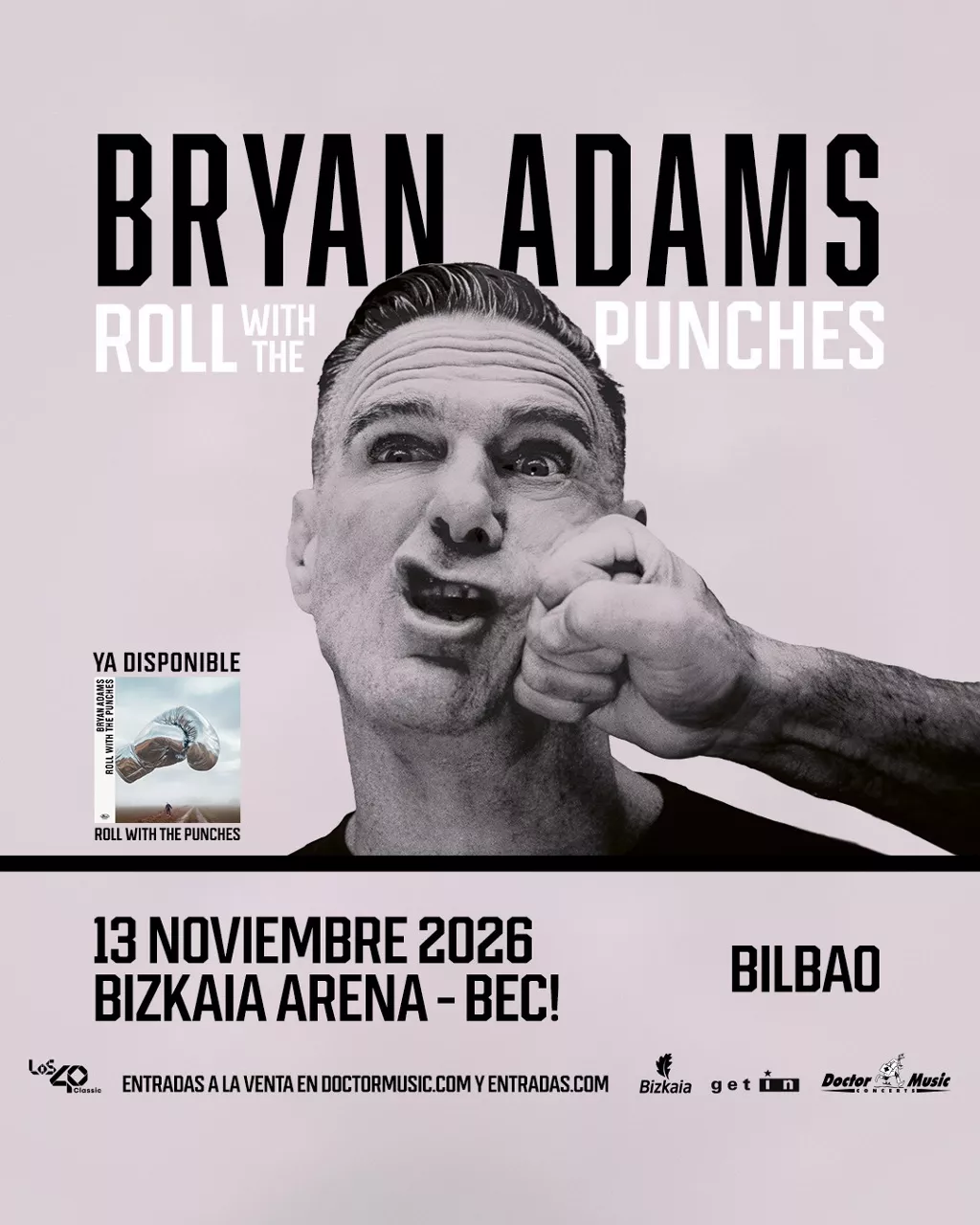 Bryan Adams abeslaria azaroaren 13an itzuliko da Bilbora "Roll With The Punches 2026" birarekin, bere aurreko emanaldien arrakastaren ondoren.