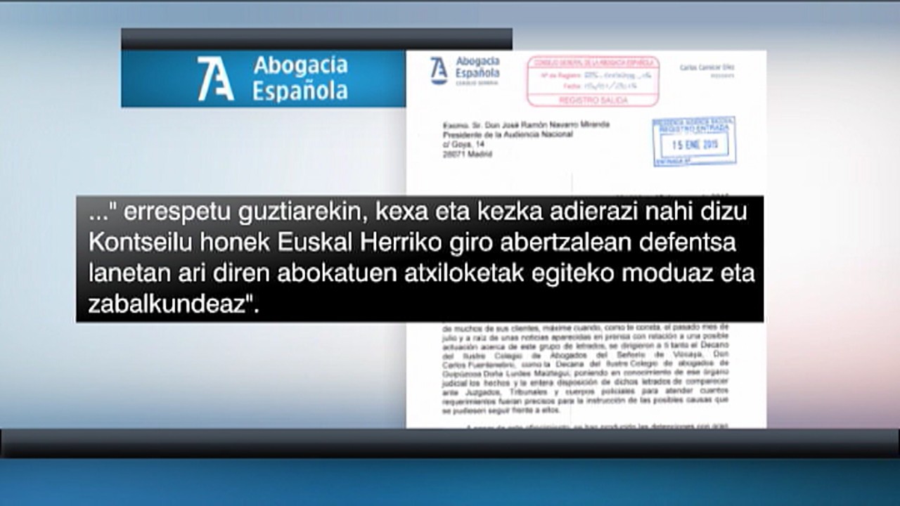 Auzitegi Nazionalari gogoratzen dionaren arabera, uztailean, abokatu talde horri buruz hedabideetan argitaratu zen informazio baten ondorioz, Bizkaiko eta Gipuzkoako Abokatu Kontseiluak harremanetan jarri ziren Auzitegi Nazionaleko presidentearekin berarekin, informazioaren berri eman eta, bide batez, abokatuak epaitegietara edo poliziarengana joateko prest zeudela esateko.