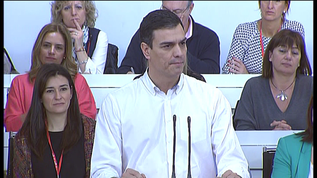 "Ez dadila inor arduratu. Balizko erabakia Batzorde Federalak eta militanteek berretsi beharko dute", iragarri du Sanchezek Batzorde Federalaren aurrean. Bertan elkartu direnek txalo artean hartu dute Sanchezen iragarpena.