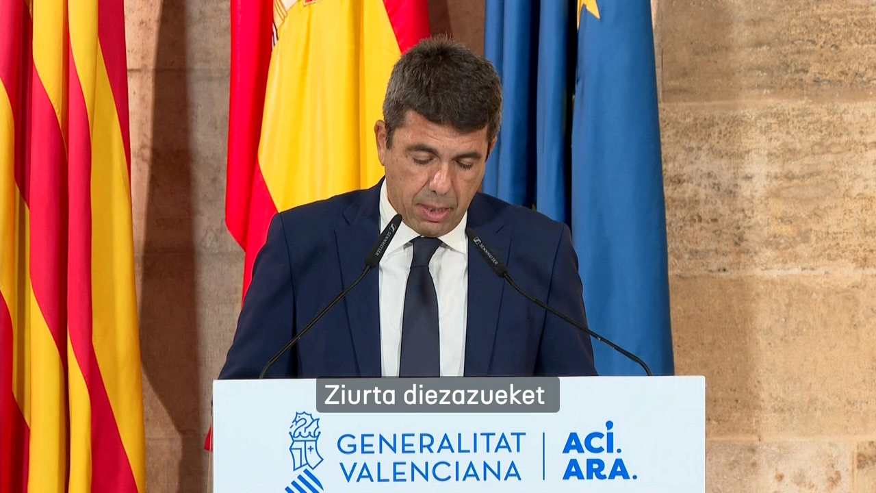 Carlos Mazonek dimisioa eman du Valentziako Generalitateko presidente gisa. Generalitateko jauregian egindako agerraldi batean eman du erabakiaren berri, karguan jarraitu ala ez erabakitzeko ostegunean abiatutako hausnarketaren ondotik, eta asteburuan Alberto Nuñez Feijoo PPren buruzagiarekin hitz egin ondoren.