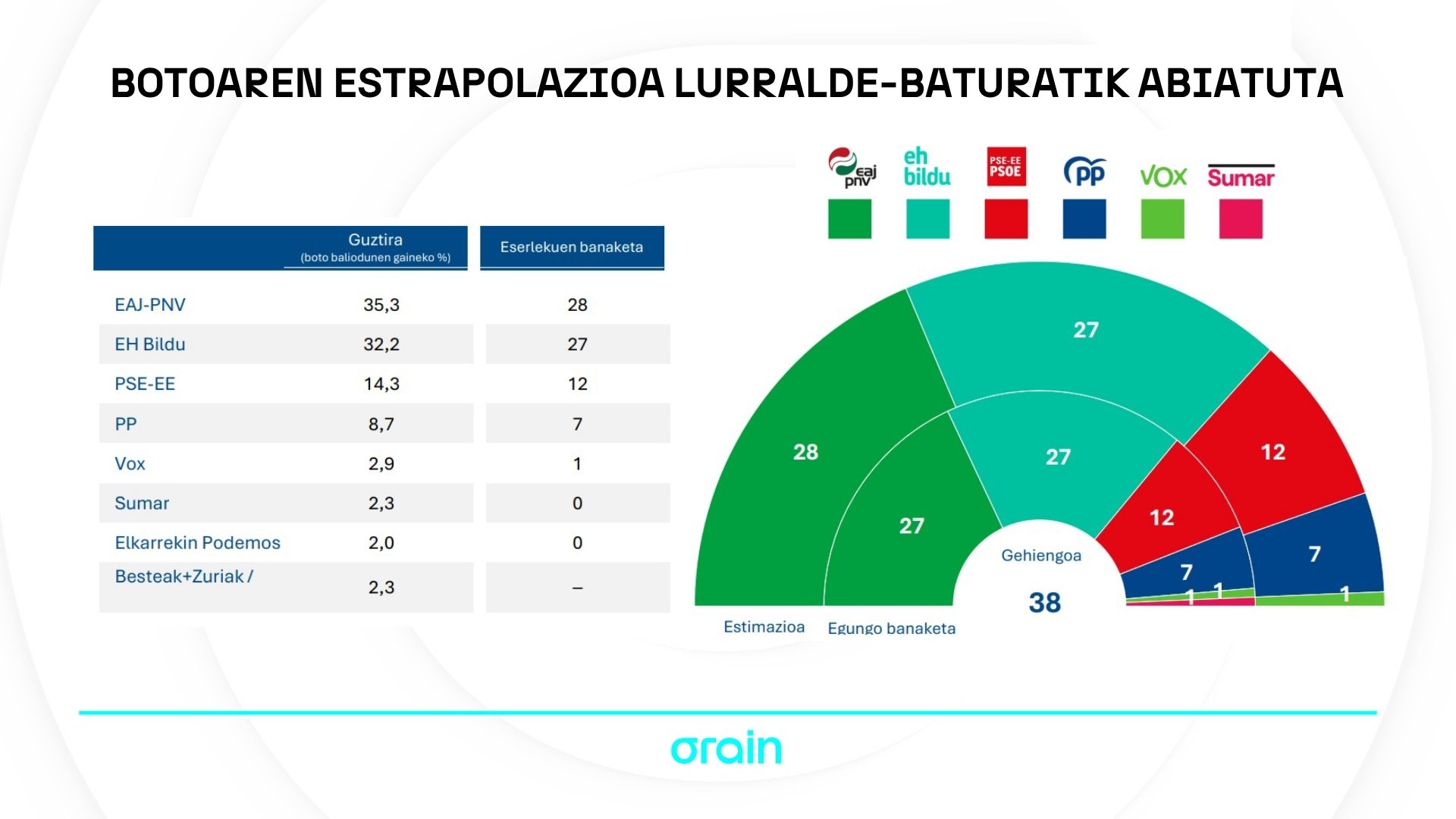 Araban, jeltzaleek eta EH Bilduk zortzina eserleku eskuratuko lituzkete, berdindurik, baina EAJ lehen indarra izango litzateke hamarren batengatik, Sumarri eserleku bat irabazita.