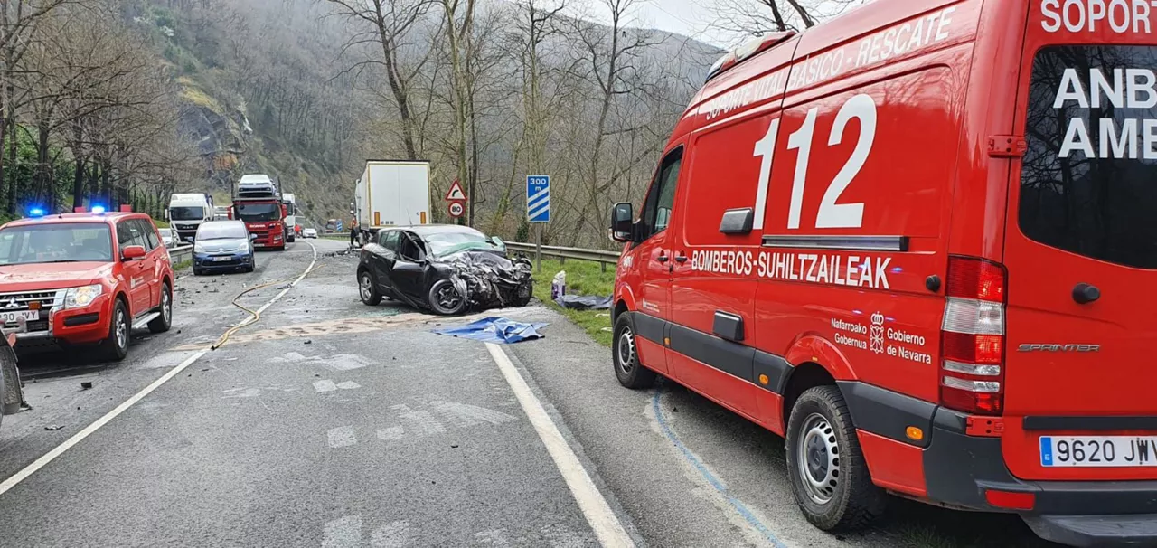 Lehen orduan izandako istripuaren ondorioz bidea itxi dute Iruñerako noranzkoan. Gidarietako bat harrapatuta gelditu da eta suhiltzaileek erreskatatu dute.