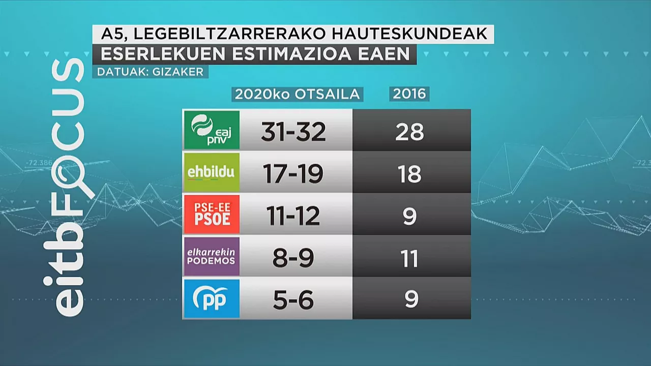 EiTB Focus inkestaren arabera, EAJk irabaziko lituzke hauteskundeak eta alde handiarekin gainera. PSE-k ere gora egingo luke eta EH Bilduk eutsi egingo lieke oraingo emaitzei.
