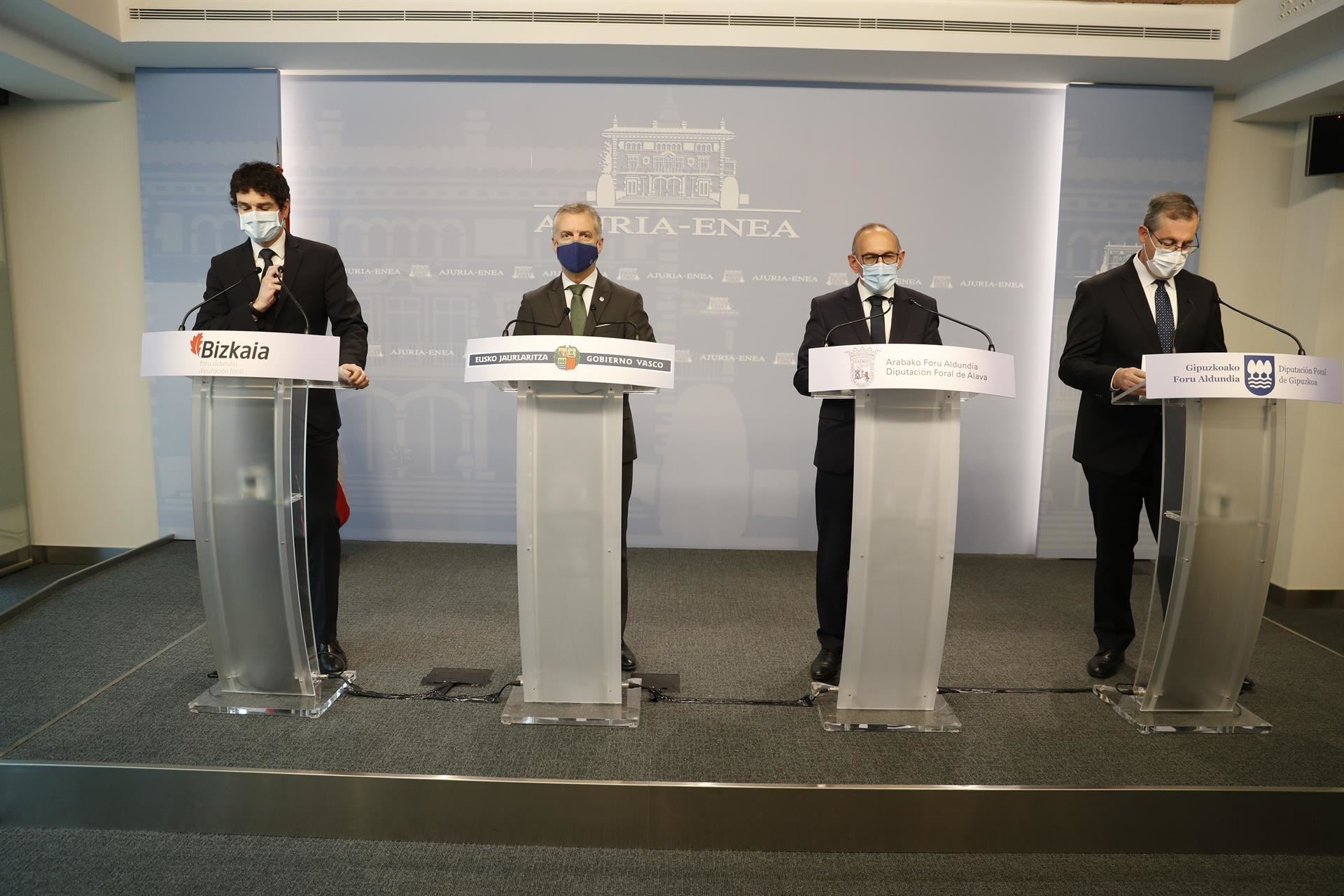 Datozen bi urteetarako plana iragarri dute lehendakariak eta Araba, Bizkaia eta Gipuzkoako ahaldun nagusiek. Urkulluk azpimarratu duenez, agirian jasotako proiektuak EAEko administrazioen "baliabide propioekin" bultzatuko dituzte.