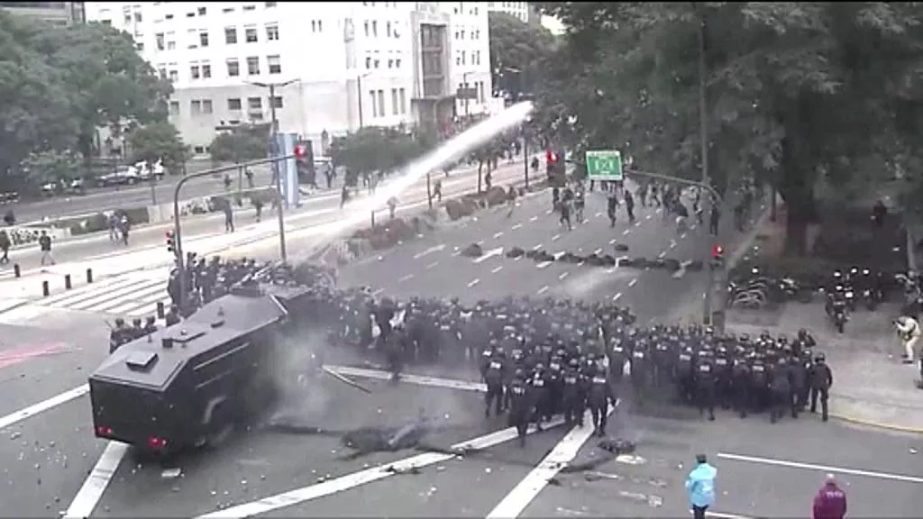 Istiluak Buenos Airesen, gizarte-laguntzei buruzko manifestazio batean
