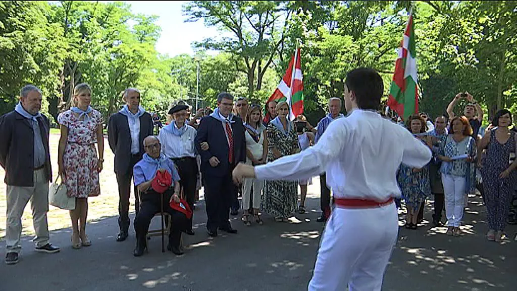 'Aterpe 1936' izeneko eskulturaren alboan, duela 80 urte errepublikaren baloreak babestu zituzten gudari, miliziano eta emakume guztiak gogora ekarri dituzte.