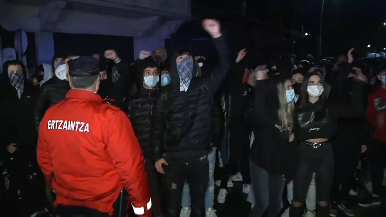 400 pertsona inguru bildu dira gizonaren etxearen aurrean. Pertsona bat atxilotu dute protestan Ertzaintzari aurre egiteagatik.