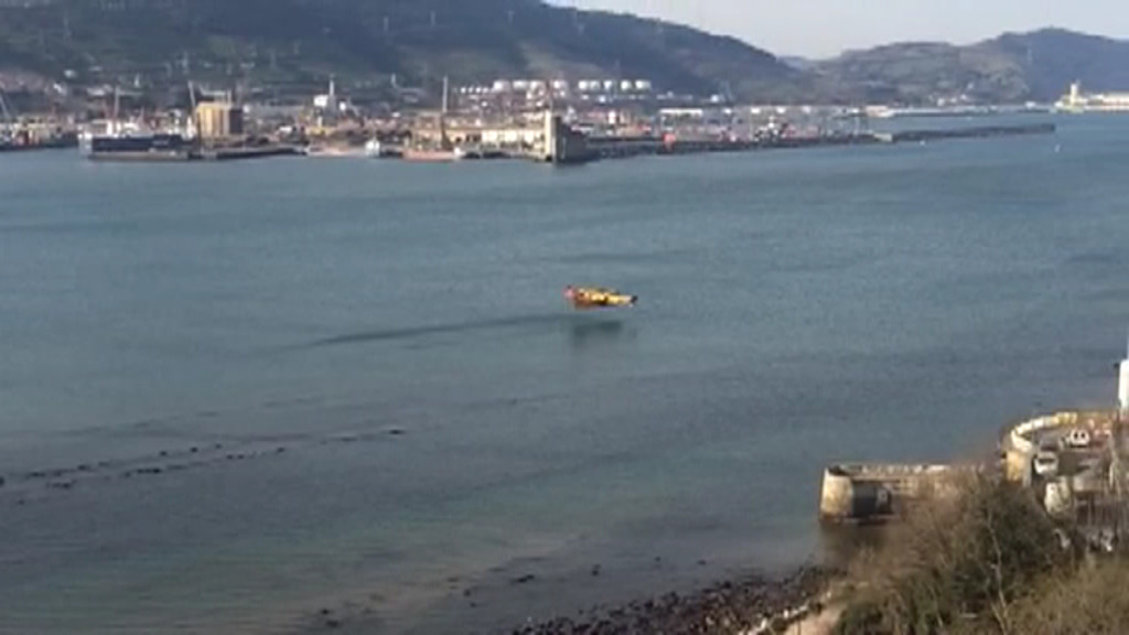 Bi hidrohegazkin aritu dira lanean Berangon, sua itzaltzeko. Borja Holguera eitb.eus-eko erabiltzaileak bidalitako irudiak.