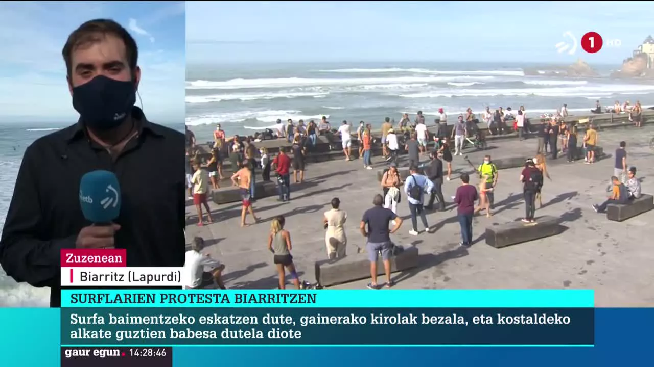 Surflariak ez daude ados hartutako neurriekin. Itsas kirolak debekatu dizkiete eta gaur horren kontrako protesta abiatu dute.