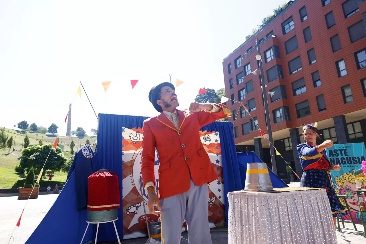 Marijaiak, Tamberlick Zirkuko malabarista, pailazo eta akrobatekin batera, harrituta eta poz-pozik utzi ditu Basurtuko Ospitaleko San Pelaio pabilioiko lorategian bildu diren haurrak. Ekitaldian izan dira, halaber, Itziar Lazkano pregoilaria, Iratxe Palacios txupinera eta Udaleko ordezkariak.