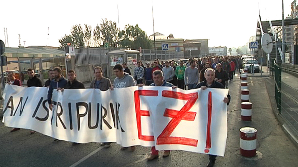 Atzo Bilboko Portuan makina bat harrapatuta hil zen 56 urteko gizonaren lankideek protesta bilkura egin dute gaur goizean.