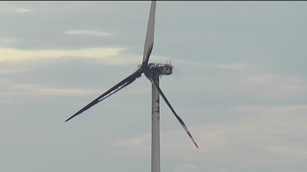 Garrak 07:50ean piztu dira. Ez da inor zauritu, baina, badaezpada, ingurua itxi dute, aire-sorgailuaren zatiak lurrera erortzen ari zirelako.